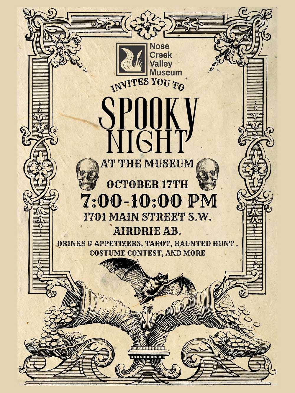 Looking for something fun to do to celebrate spooky season? Come join us for an adults only spooky night at Nose Creek Valley Museum!
